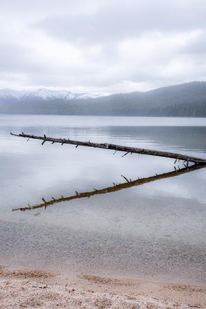 Alturas Lake tree reflection. Moody day in Stanley, Idaho.